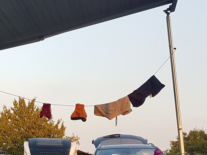 Although we seemed to be parked in the middle of a big family group we weren’t actually disturbed by them much. The caravan granny from next door who had been sitting watching us set up had a wee chat to me later on and said she was impressed by our arrival, especially how we didn’t even argue!