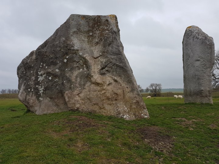 but we couldn’t easily abandon the van anywhere nearby. As we came in to Avebury village there were just massive stones right there suddenly as we turned the corner.