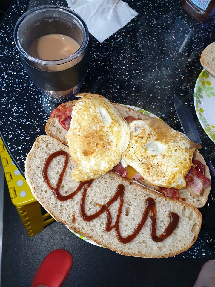 I’m not sure if Sullivans was the only chippy open, but folks were queuing halfway up the road. After a bit of whining from the eldest, and pigeon spotting from the smallest it was our turn. We collected our order and headed over to sit on the front to scoff.