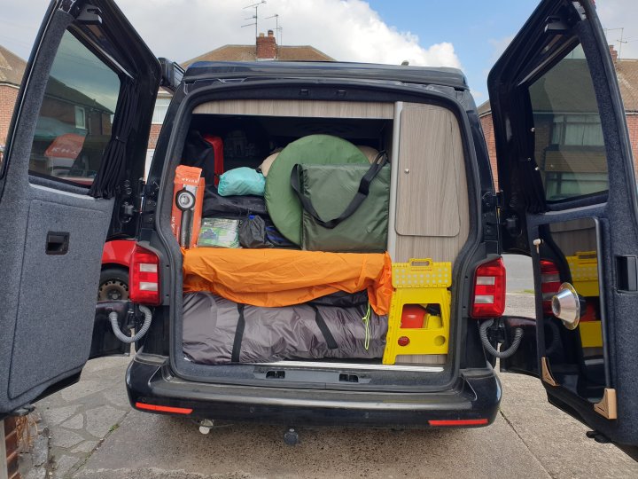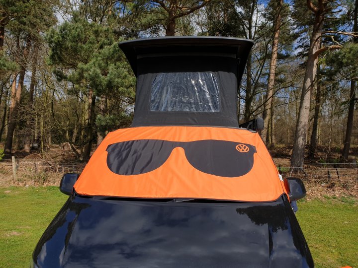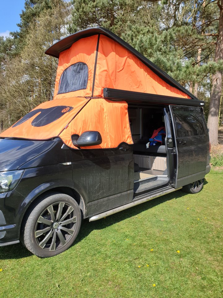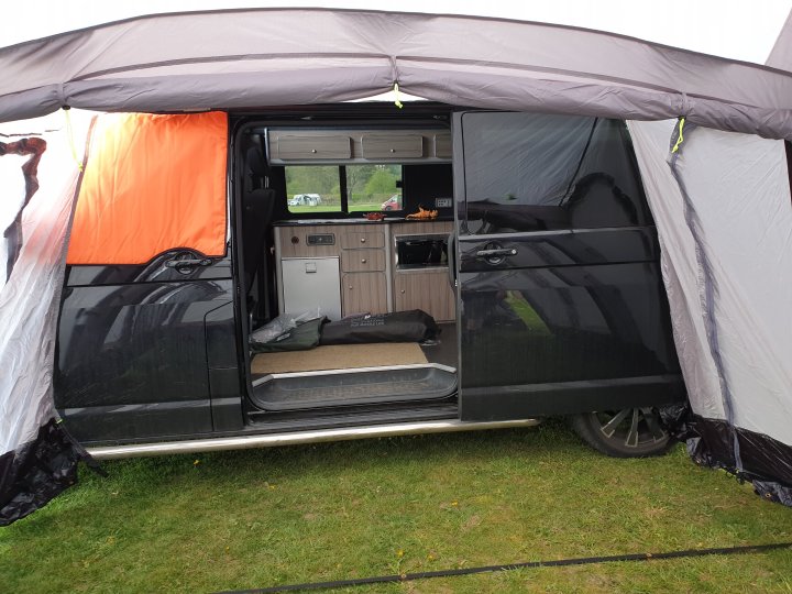 Van was crammed full for just an afternoon’s entertainment and we found a spacious spot to begin.Screens went on first – windscreen cover went on first, hooking over cab doors, no worries. You just have to remember not to open the doors when it’s all fastened.