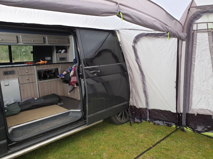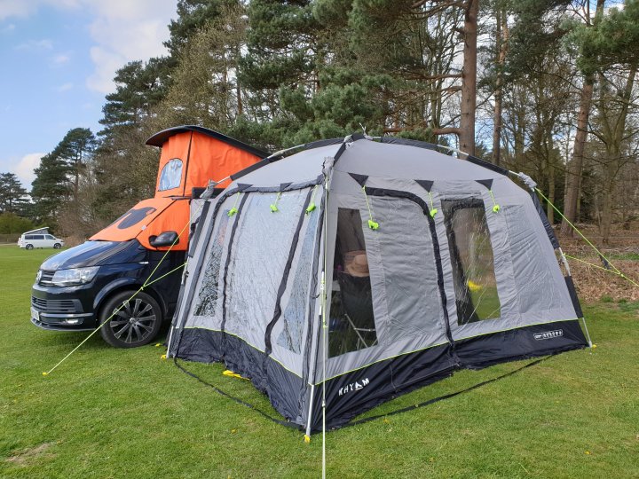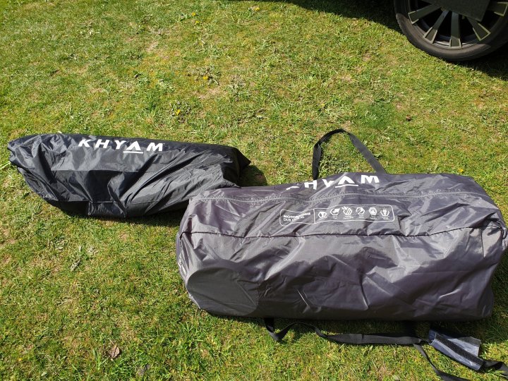 So, we moved on to the awning. Bags were ruddy heavy but we did have the Dub Hub XL, ground sheet, inner, mesh panel, bedroom pod, bedroom inner, bedroom groundsheet and baffle. Managed to shove most of it into 2 bags.