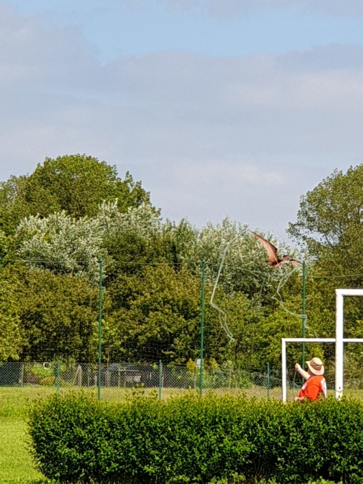 And due to the rubbish strewn, over grown play equipment and the stealthy return of feral ruffians, we took to the footie field for the maiden voyage of HMS Pterodactyl kite.