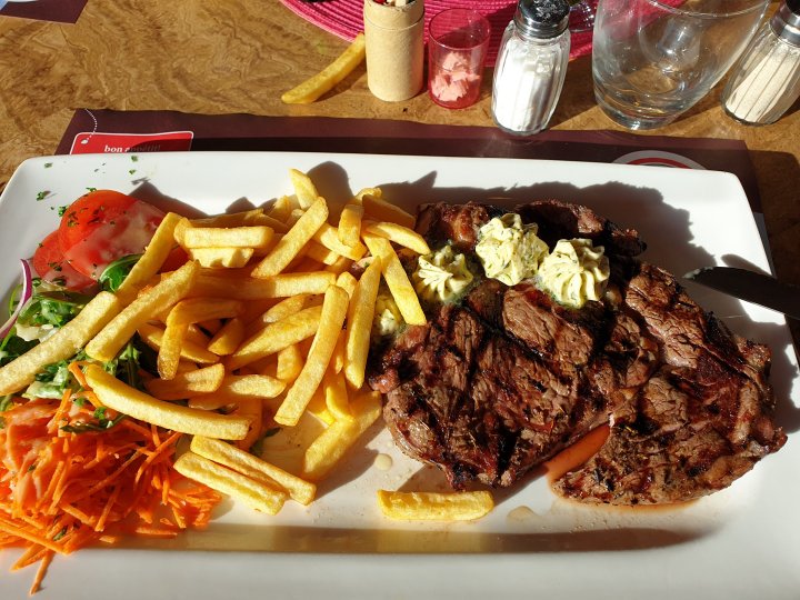 There was a supermarket and a couple of restaurants also nearby, which seemed, enticingly, to specialise in Côte à l’os (T-bones) and we planned on entertaining ourselves with both.