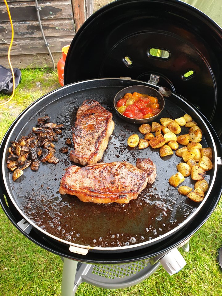 We brought the Cadac out for its 2nd performance in the wild and had very tasty steaks, spuds, mushrooms and tomatoes. And beer.
