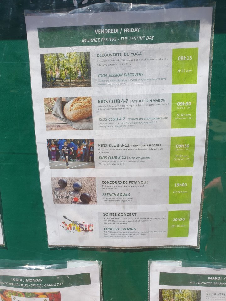 Much to Madame’s delight there were daily activities aimed at youths in morning and evening, so over the course of the stay we participated in dream catcher making, horse riding, wooden games, le welcome drink, magic show etc.