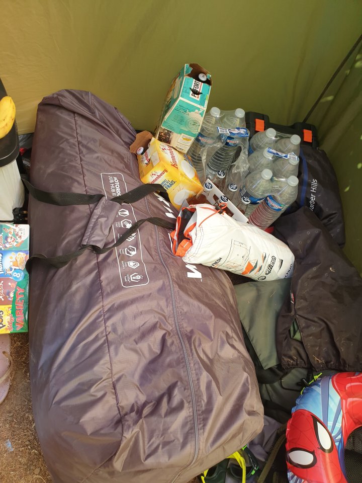 We put up the John tent of course, which on this trip became known as The Shed, as it housed the unused awning, the unused John, the cellaring arrangements for beers, drinking water and soft drinks and other miscellaneous tat.