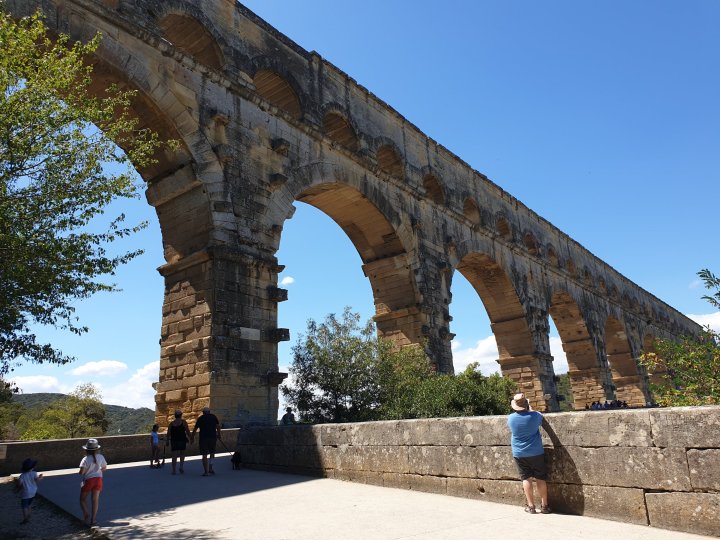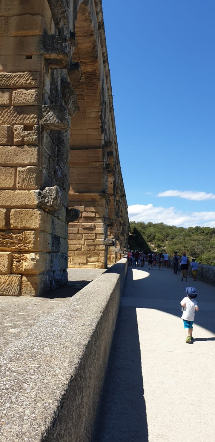 The majestic Pont du Gard, Roman treasure and visitor attraction just under an hour away from Fontvieille, of which we knew nowt, seemed like a good way to bypass the midday canicule, if only for the chance of enjoying the vehicular aircon and taking a few cheeky snaps. We had no idea what to expect, if anything beyond the actual bridge, so to discover you could download an app for a visitor guide was surprising to say the least.