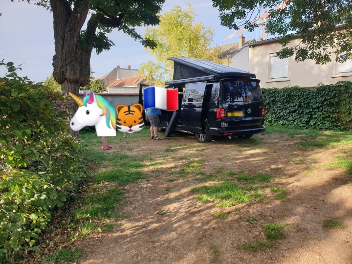 I scuttled off down the site to discover I was his only customer, having coppered up to be able to afford deux baguettes tradition and was ambling back when the ruddy van passed me, only to park right outside our pog to scout for more custom.