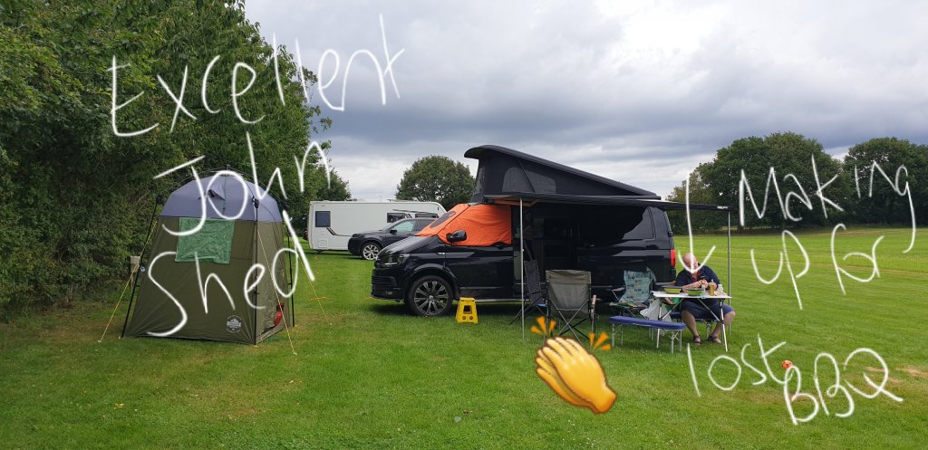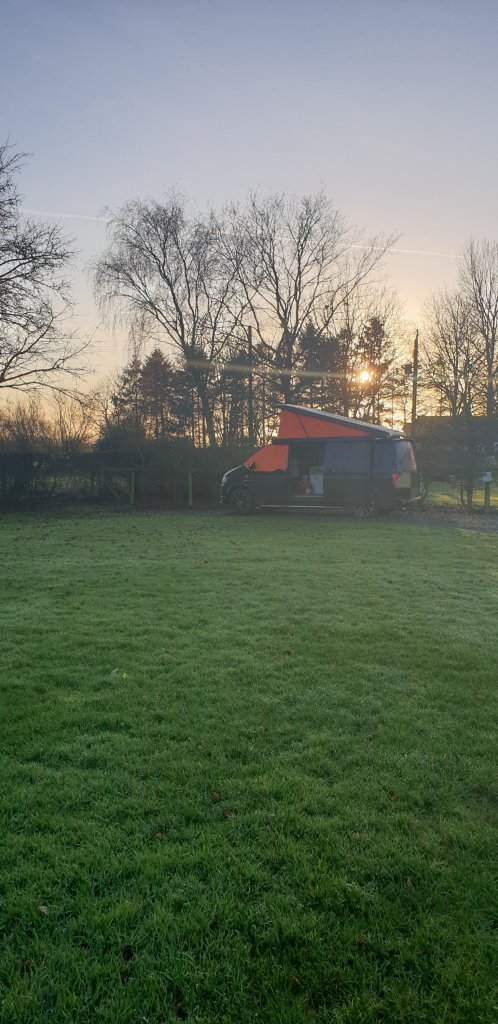 It took 4 tries to find somewhere for a Saturday nighter, we ended up at the very much enjoyed previously Sealwood Vineyard. When I spoke to the mester by phone he said 20 nicker, but no facilities except water and EHU. Done.