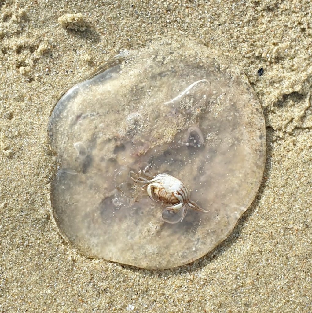 A tram around on the beach collecting shells, being freaked out by tentacular beasties (the mistress) and getting a wet bum (the boy child), jellyfish count 3, including one which contained a crab #InterestingOccurrence