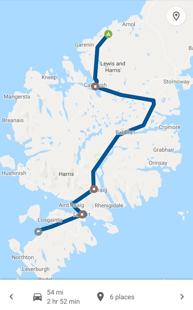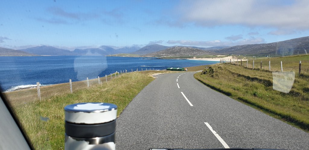 Fuel (and Adblue) was becoming a consideration so we decided to head up towards Tarbert first to find a petrol station, and then return to our camp, we weren’t supposed to arrive before 2pm so we had a bit of time. Any worries about the lack of, and the price of fuel were actually groundless, plenty of (small) filling stations about, and due to the weeny size of the islands, chances of using up a full tank were minimal.