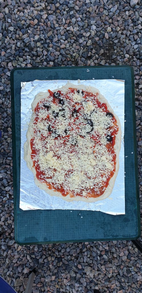 Wednesday teatown was pizza night. Homemade dough and the Cadac made only its second appearance of the holiday to burn the bottom and sog up the top of our chorizo/red pepper/olive/cheese creation.