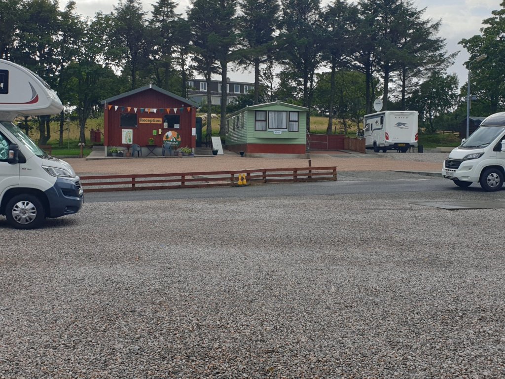 We stocked up on groceries anyway and headed to Laxdale Holiday Park. Pre-booked, as is only sensible in these times, their website trumpeting loudly their adherence to Covid guidelines, so no facility block etc, stay in your vehicle for check in etc we were greeted with this stunner: