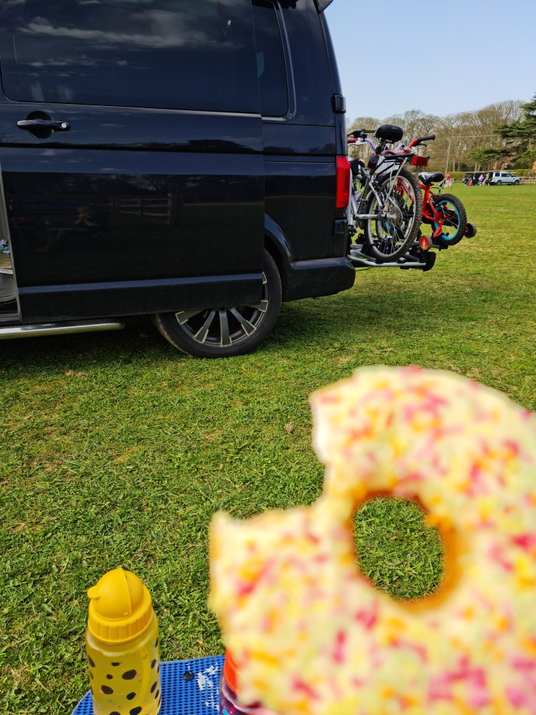 A bit of capering about by the assembled infants and juniors, some velcro bat and balling and some mithering about needing to bike ride necessitated a coffee and a very nice doughnut 🍩 to keep the peace.