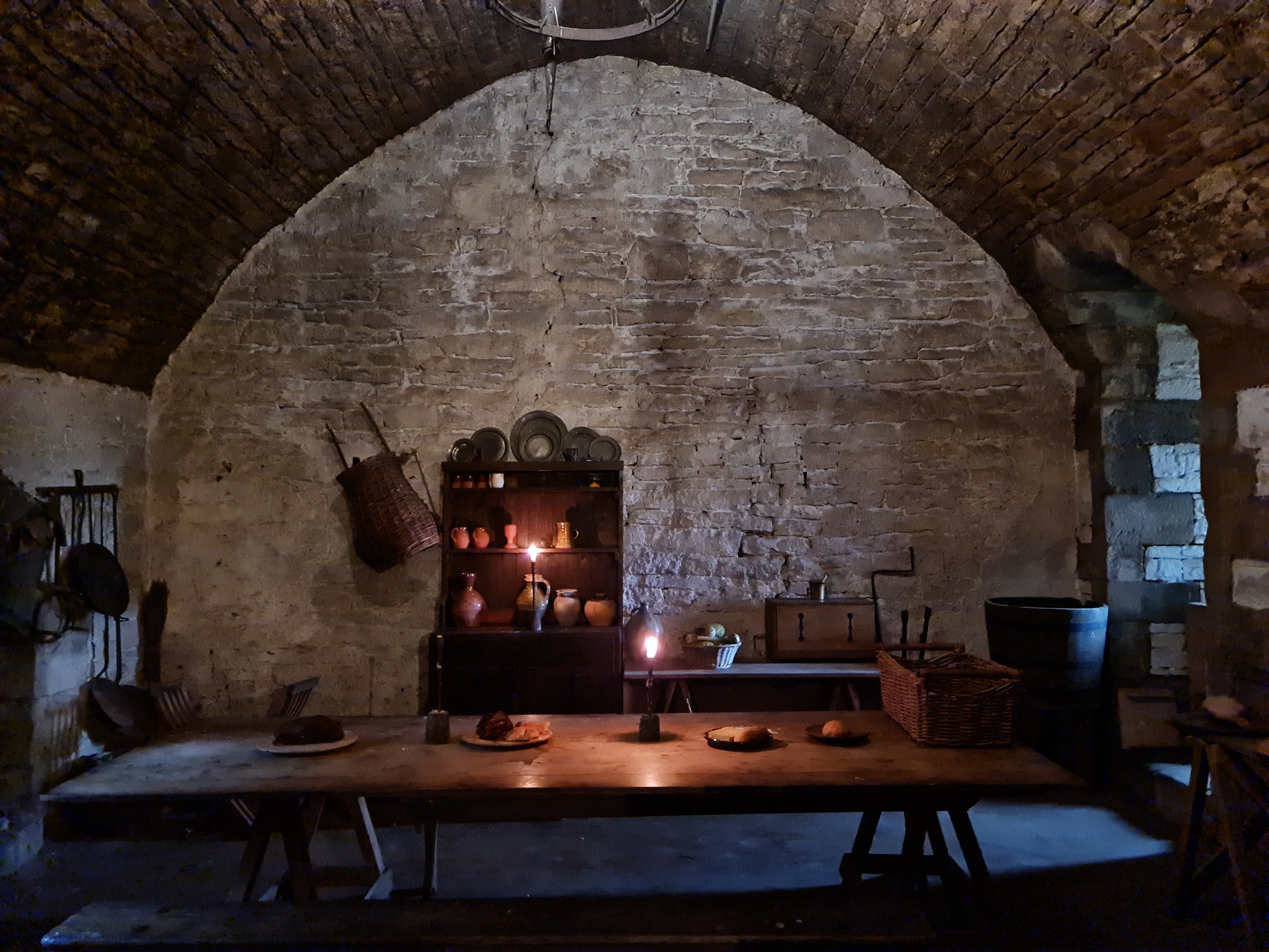 It was 3 quid to park, with 2 of those refunded against entry, which was about 30 for the 4 of us (not a family ticket mind, that is more expensive!) Part ruin, part medieval living area, part museum, with Halloween decorations, tea room, gardens, birds of prey, a maze, and surprisingly, a vineyard. All very diverting, as was the discovery of a pen of wild boar on the way back to the van. The maze was particularly auspicious, as we dealt with it much more successfully than the previous day’s labyrinth experience at the Forbidden Corner. We had to book a time slot and the earliest we could get in was 3.30pm, so we idled in Leyburn and had sausage rolls by a scenic pond.