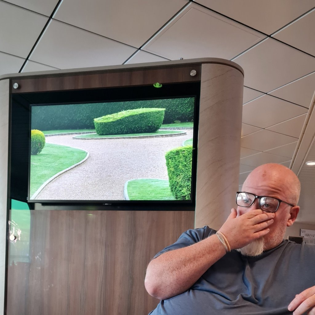 The first night aboard was smooth and we found comfy spacious seating in an area we liked to call Hedge TV, due to the visual delights on offer: