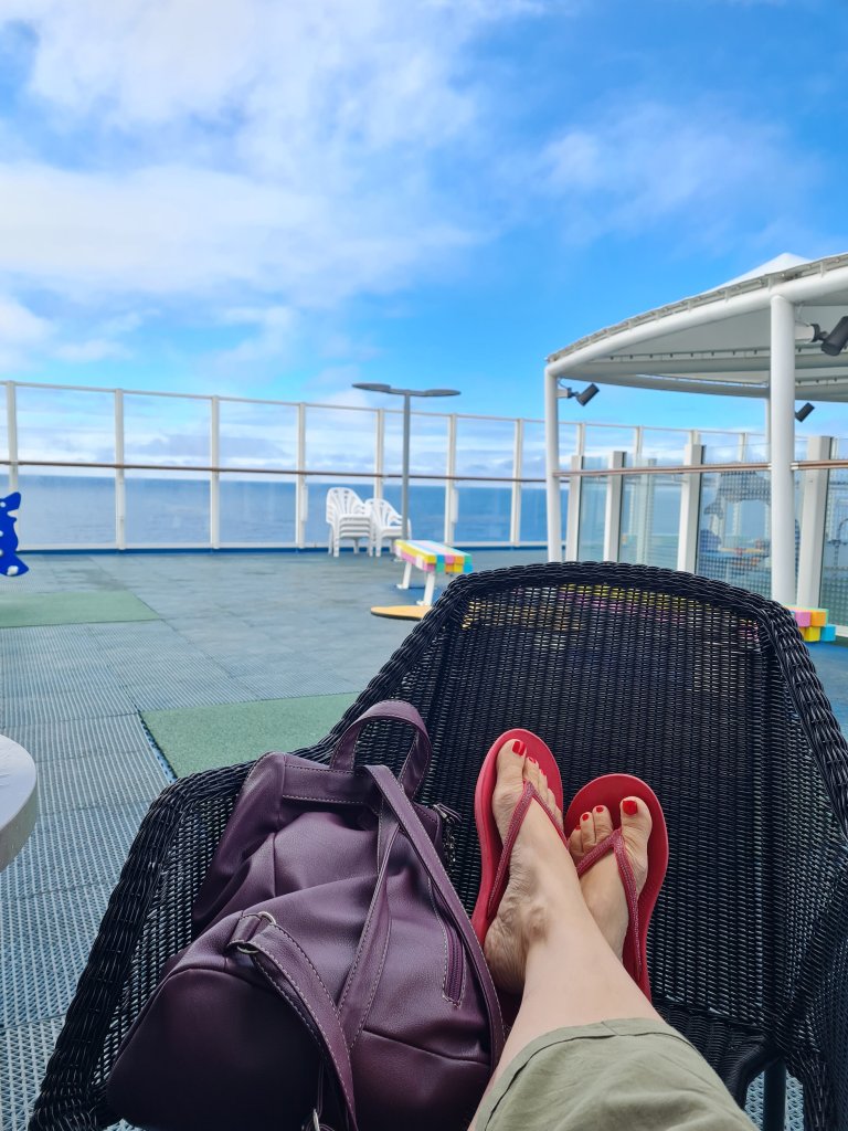 By breakfast time the swell was building and me and H had to adjourn to the upper deck for some much needed air and space, forgoing the all inclusive continental spread.