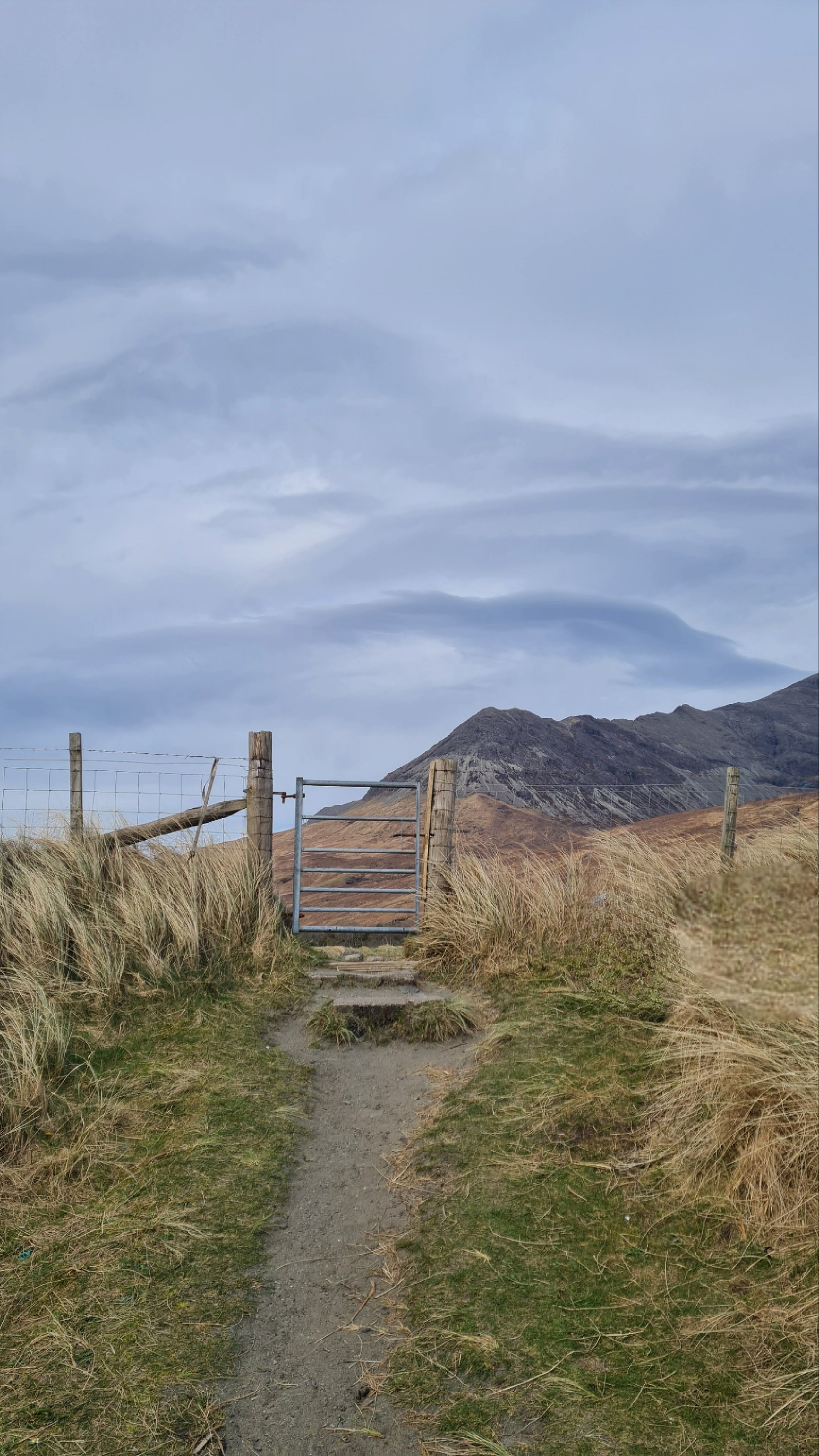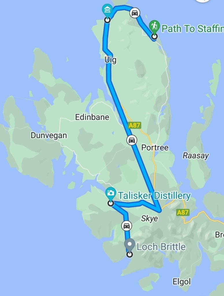 The steep descent and hairpin bends going into Uig were a surprise, as was the oncoming traffic at the worst possible moments. We missed the turning to the Fairy Glen, with no opportunity to stop or turn round for miles and had to go back to Sligachan to take the road to Talisker and Glenbrittle. We should have heeded the scarecrow’s warning ⚠️ “Substandard roads for the next 10 miles” 🙄 He wasn’t wrong.