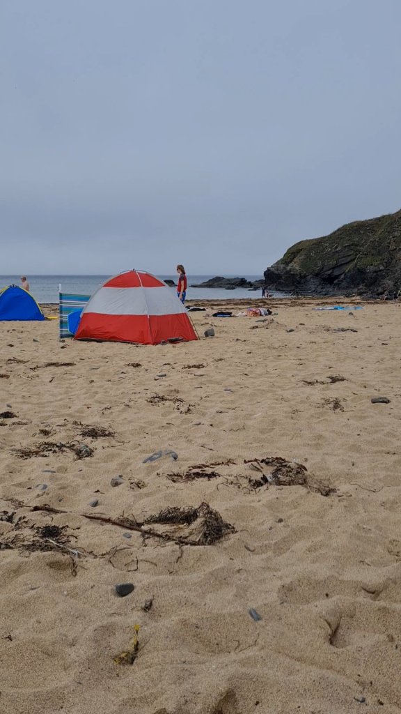 We did catch the occasional glimpse of the sun and decided to check out Poldhu Cove beach, as recommended by Vango neighbour. We paid 3.50 in the car park (valid a whole day). The beach had a cafe and ice cream shack but was pretty small and very crowded, even when the sun went in and the wind got up. To enjoy a beach here, you clearly need a wetsuit.