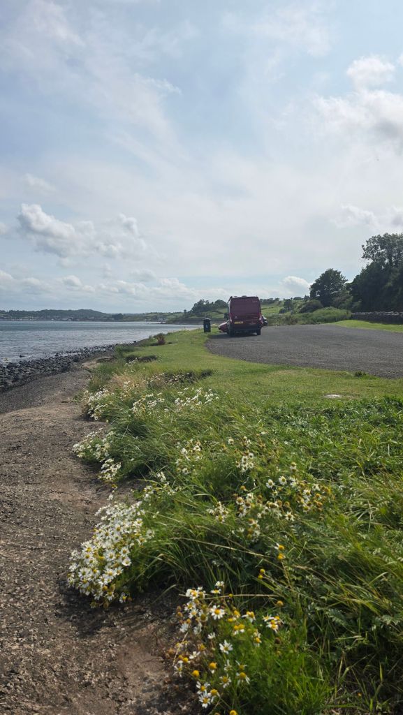 We decided to take the slow road, so from Antrim headed out to Larne to pick up the A2 which basically goes all the way around the coast, with a couple of minnow detours in the top corner. We liked the look of loads of coastal spots, but most of them were unwelcoming for the taller vehicle, so we continued…