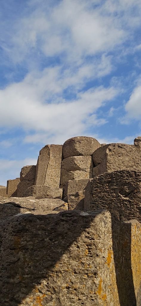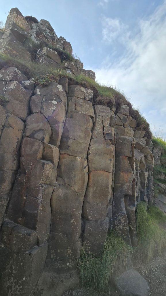 The bus was actually really nice – clean and modern and efficient, it got us to the visitor centre in 4 minutes. Me and H finished off our snap and then we headed in. We opted for the self guided audio tour and took the relatively easy green and blue route, taking in Humphrey the camel, the Windy Gap, the Gian’ts Gate, the actual causeway itself and the Giant’s boot (size 93.5 don’t you know!) Me and H opted to continue on to the start of the red path to go up the hill to see the Pipe Organ and then come back down again.