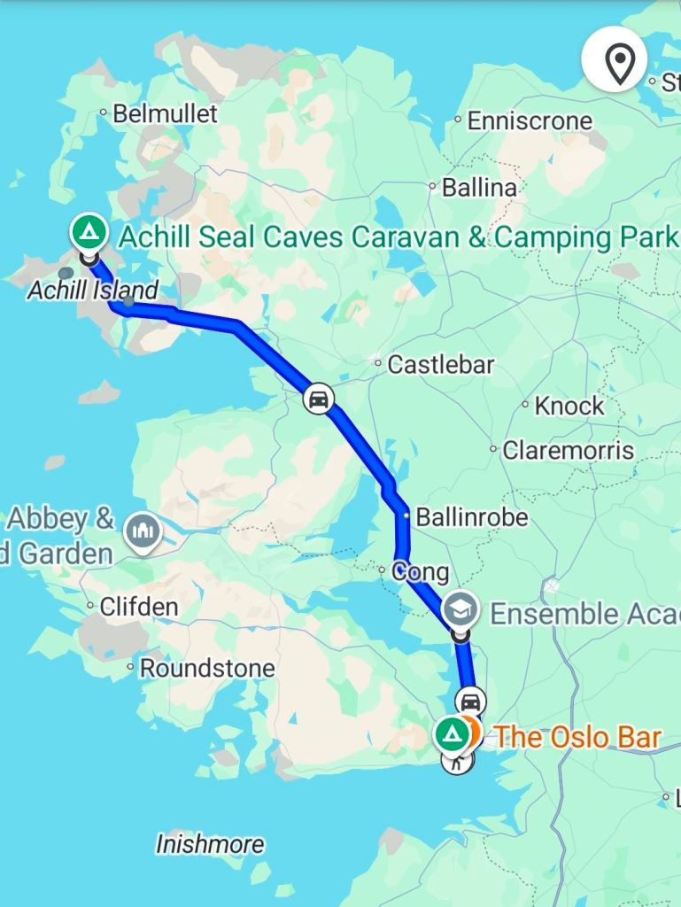 We got up at the crack of dawn to be off Achill by 9am and on the road. The google said that we were looking at about 3 hours, so we got on with it. About just over half way we stopped at a roadside horsebox which we spotted doing coffees and snacks, and it was full on the best decision of the day! The coffee was strong and tasty and the snacks were delicious and kept us going until we reached Galway.