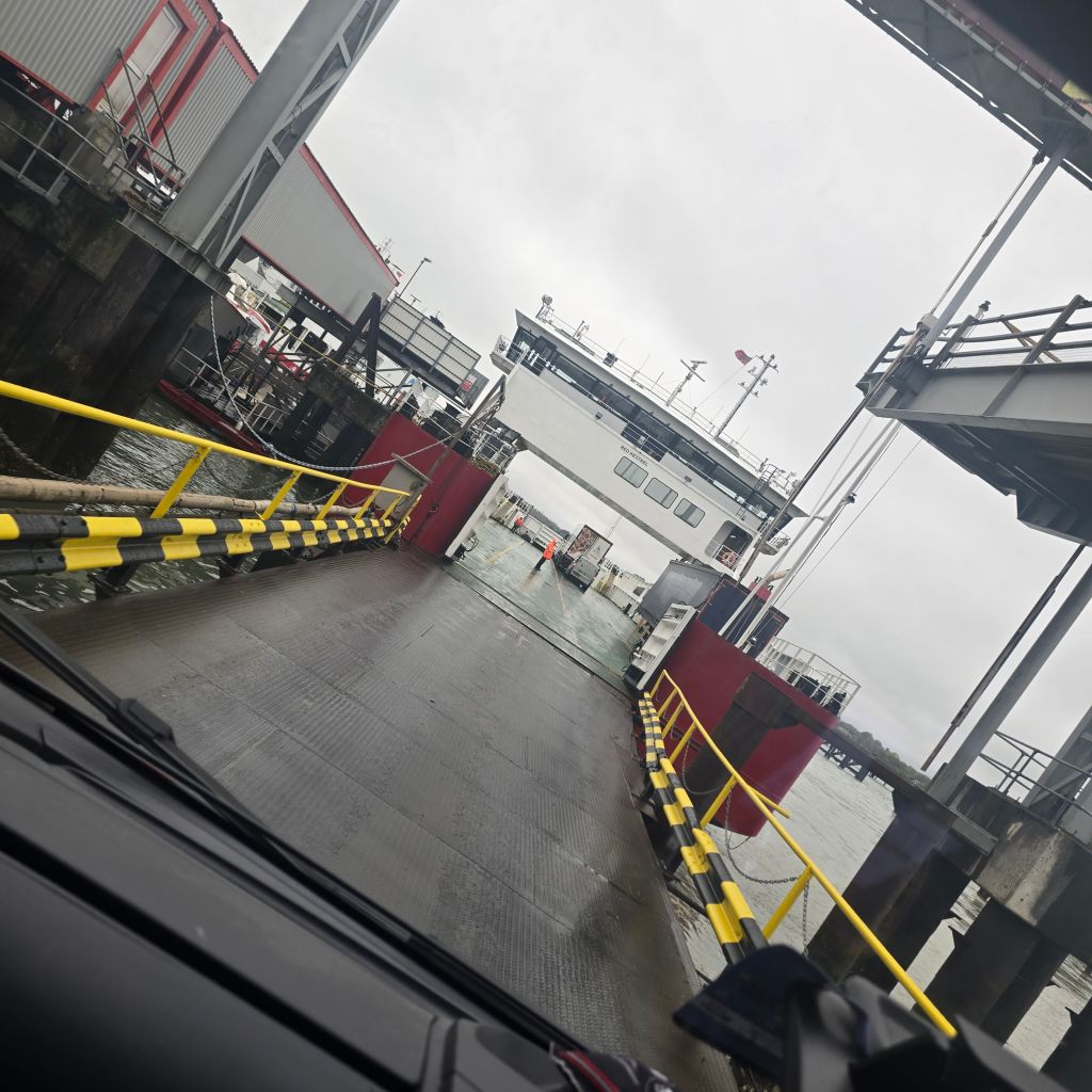 We had to squeeze into an irregular parking bay just outside the port entrance, due to being over keen on the arrival front, but on being waved through we weren’t parked up long before the little mester offered us the chance of going on the 10.25 whilst they were counting up the vehicles lined up.